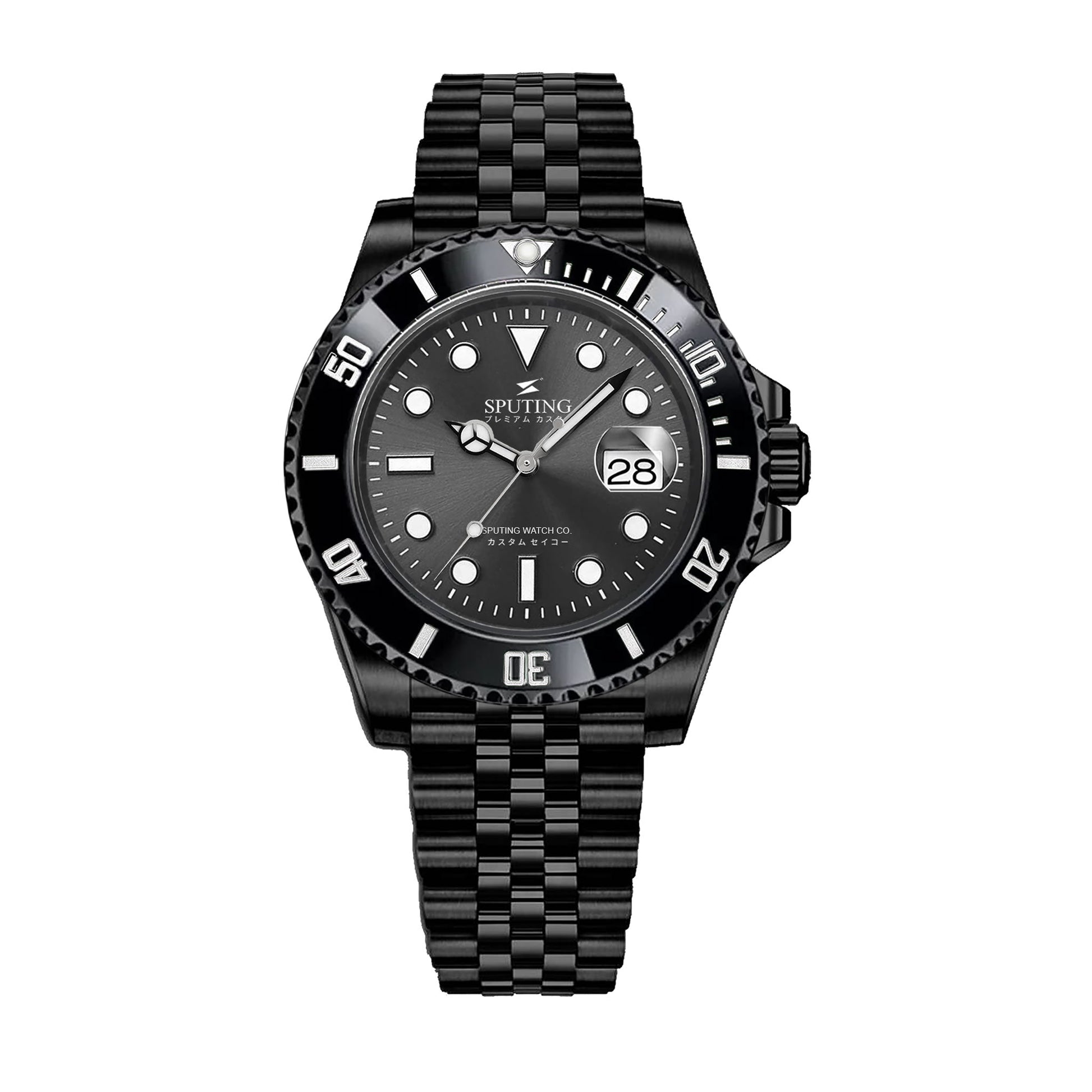 The Commemorative Submariner PVD Jubilee Grey Dial with Black Bezel Insert is crafted with premium custom Seiko custom parts for a superior watch experience. Authentic Seiko supplied decorated NH Series NH35 movement. Expand your horizons and explore the depths of designs with this high-quality timepiece.
